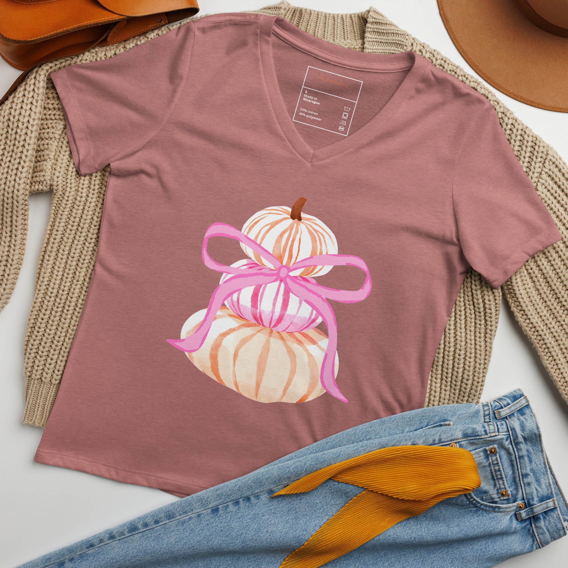 Pink Pumpkin Bow Women’s relaxed v-neck t-shirt